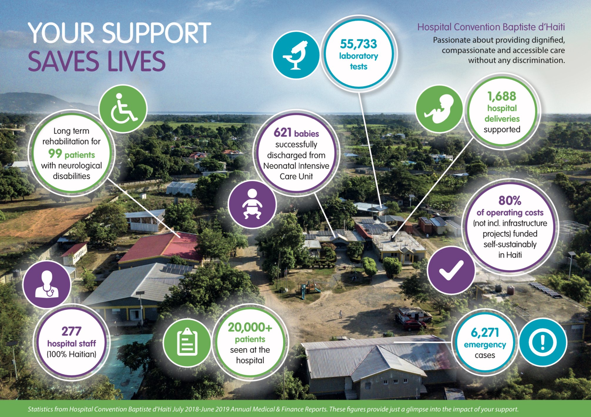 In 2007, HHA UK co-founded Hopital Convention Baptiste d’Haiti (HCBH), a general hospital in northern Haiti which is now one of the region's leading facilities. HCBH is a 100+ bed hospital that is run by 300 Haitian staff and supports over 30,000 patients a year.